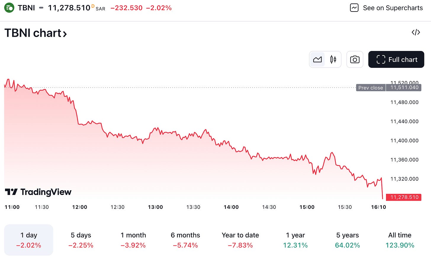 أغلق مؤشر TASI عند 11,907.43 نقطة مع نهاية الأسبوع الثالث من شهر أكتوبر 2024، مما يعني انخفاضًا بنسبة 1.09% مقارنة بالإغلاق السابق.