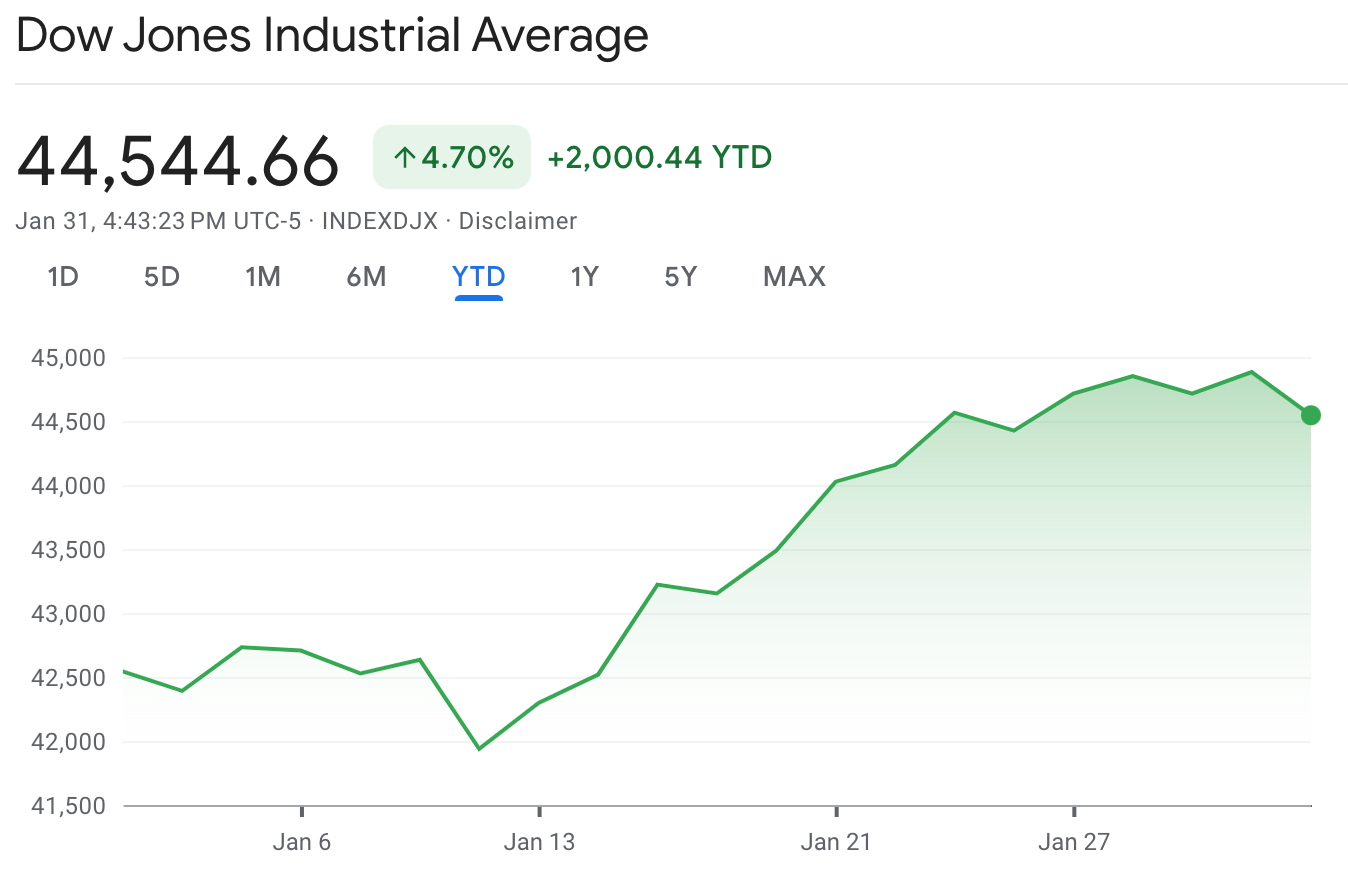 أداء السوق الأمريكي في شهر يناير 2025