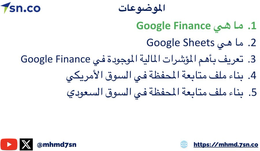 في محاضرة مجانية سأشرح كيف تستخدم جوجل فاينانس في بناء ملف متابعة محفظتك على Google Sheets