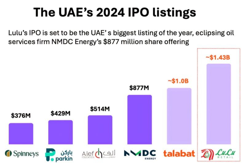 هذا الأسبوع، شهدنا إنجازًا مذهلًا: شركة لولو ريتيل تدخل سوق الأسهم في أكبر اكتتاب عام في الإمارات لعام 2024، حيث جمعت 1.72 مليار دولار، بعد أن كان الاكتتاب مكتتبًا 25 مرة أكثر من المتوقع.