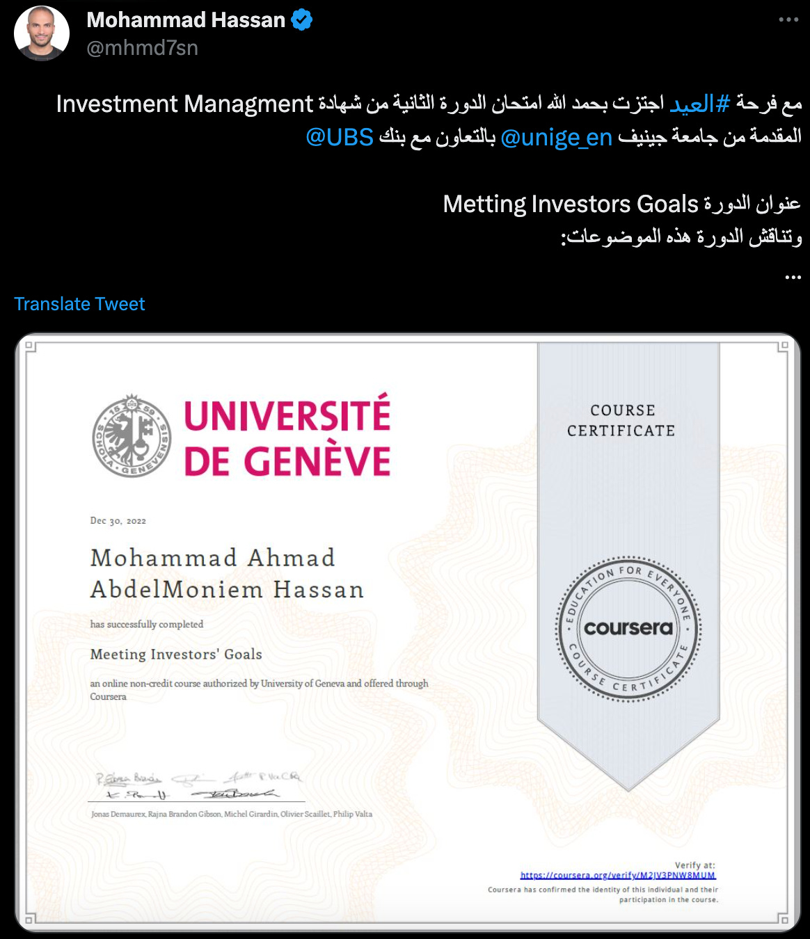 فحصلت على شهادات من جامعة جينيف في سويسرا
