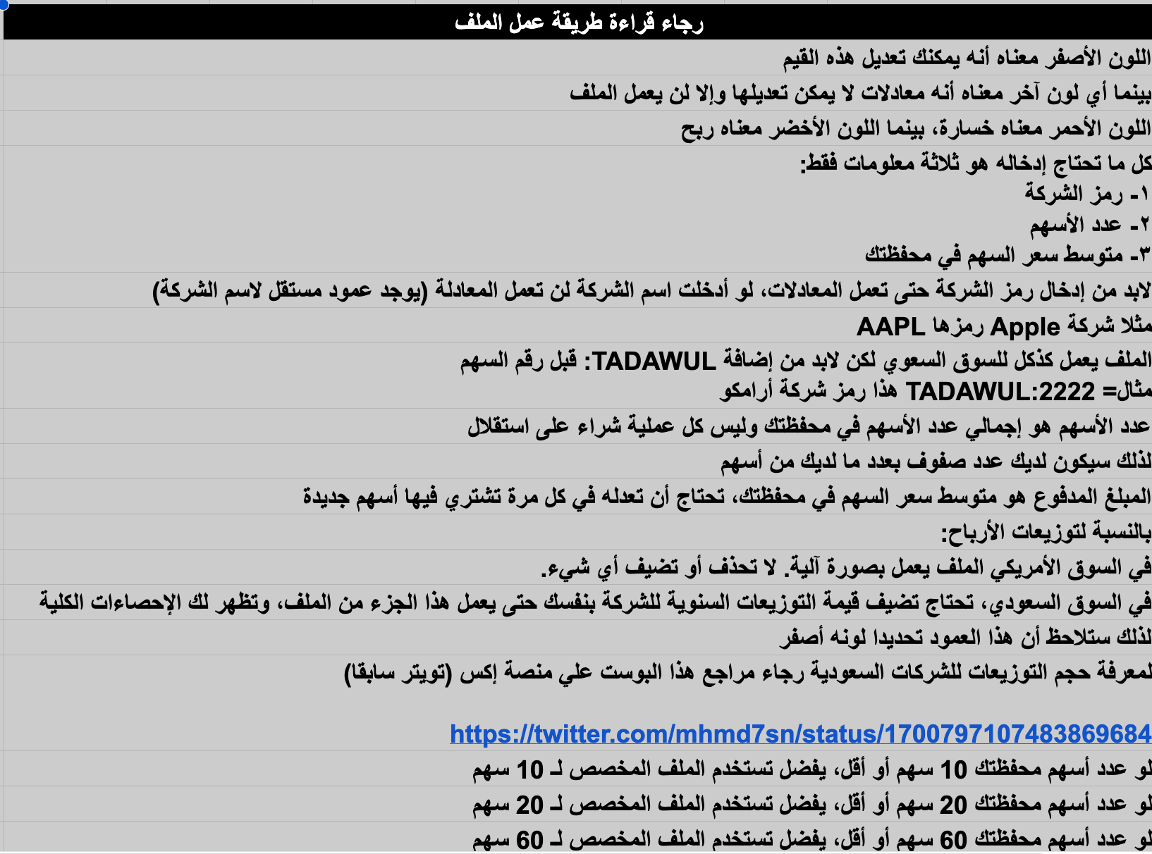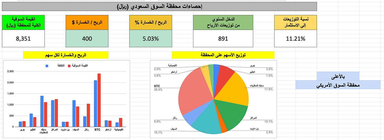 الآن باستخدام نفس الملف صار ممكن تتابع محفظة #السوق_السعودي و #السوق_الأمريكي من مكان واحد بصورة سهلة ودقيقة.