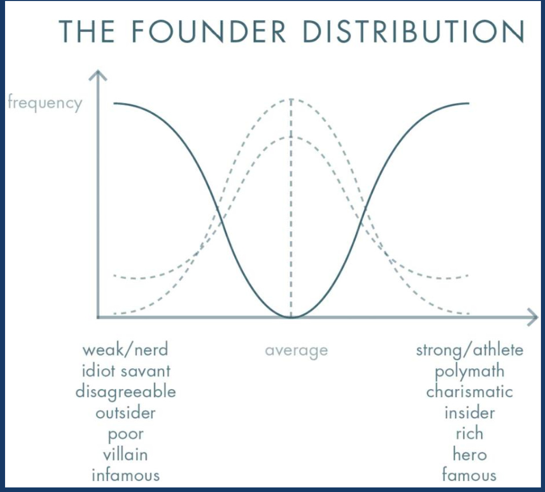 أو مفارقة المؤسس؛ تكلم فيه عن كون مؤسسي الشركات الناشئة الذين يحلمون بتغيير العالم من خلال أعمالهم يختلفون في تركيبة عقولهم عن الموظفين العاديين؛ بحيث يظهرون في الجهات المتطرفة من أي توزيع عشوائي لمجموعة من الناس كما هو موضح في الشكل التالي: