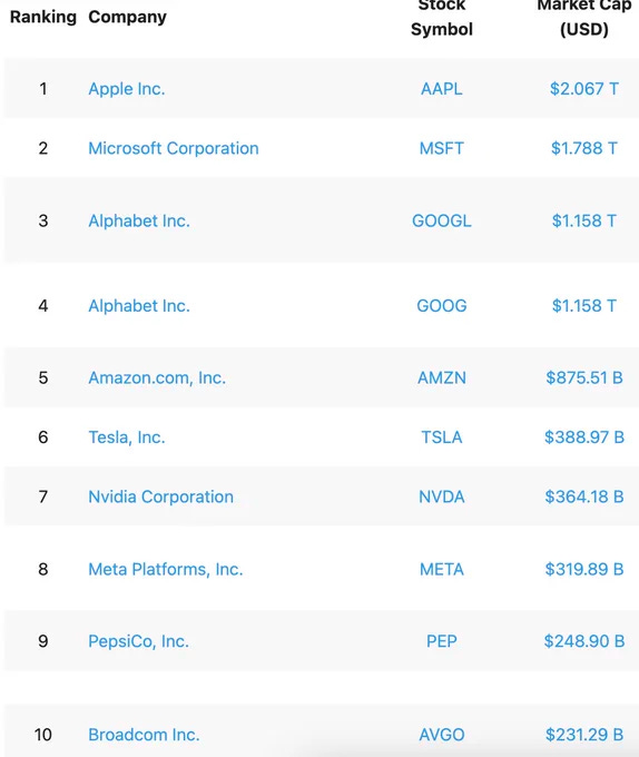 بطبيعة الحال تجد شركة أبل على رأس القائمة، يليها مايكروسوفت، ثم جوجل، ثم أمازون وتسلا.