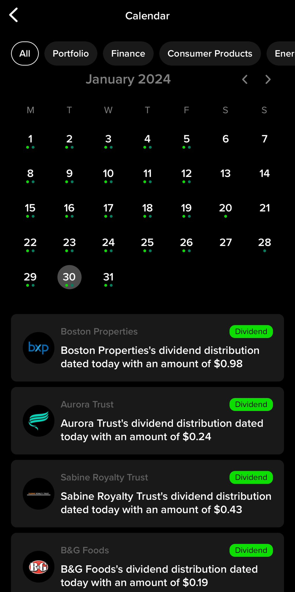 وهي خاصية تعطيك مواعيد إعلانات النتائج المالية وتواريخ توزيعات الأرباح لشركات محفظتك أو شركات أنت تتابعها. هذه الخاصية غاية في الأهمية لمستثمري القيمة طويل الأمد، وتساعدهم على اختيار التوقيت المثالي للدخول في السهم